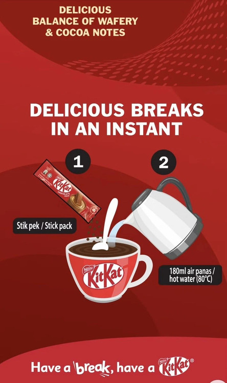 این محصول یک نوشیدنی شکلات داغ فوری است که طعم معروف شکلات کیت کت را با شکلات داغ ترکیب میکند.