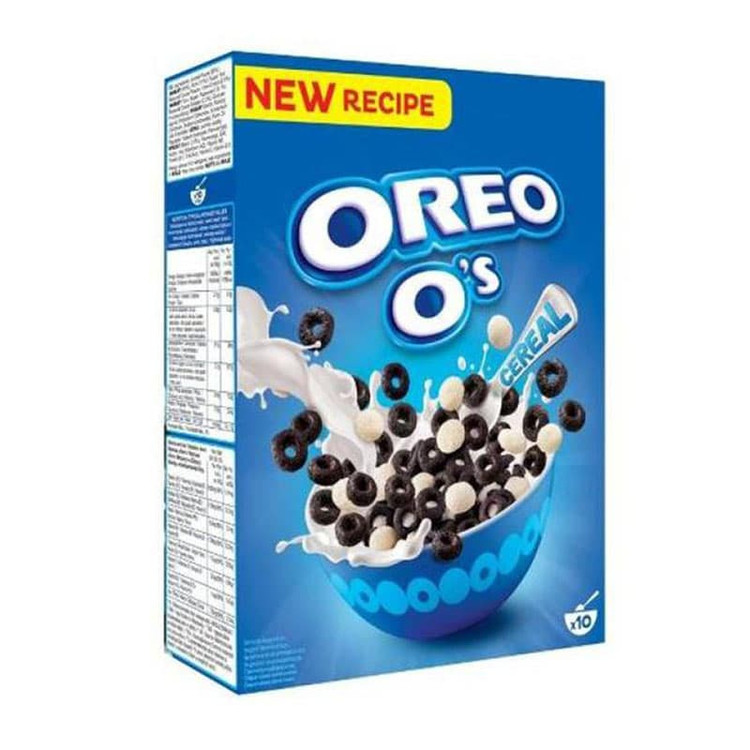 ویژگی ها: این غلات با طعم بیسکوئیت اورئو است که شامل حلقه های گندم کاکائویی و تکه های برنج با طعم وانیل است