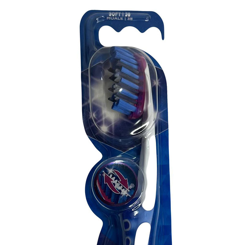 مزایا : داراي دو سر انعطافپذير و متحرک - داراي الياف نرم جهت جلوگيري از آسيب به لثه - از بين برنده 90 درصدي لک هاي روي دندان - قابليت انعطاف پذيري هر قسمت از مسواک به صورت مجزا