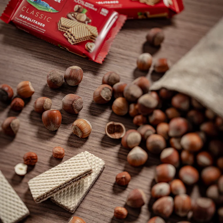 شامل سه لایه ویفر ترد و دو لایه کرم ناپولیتانر فندقی هستند که فندوق های استفاده شده در کرم 100% ایتالیایی و تازه برشته شده هستند.