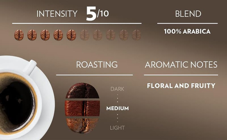 این قهوه ترکیبی نفیس از اسپرسو ایتالیایی کلاسیکو که شامل 100 % دانه های قهوه عربیکا با کیفیت از افریقا ، آمریکاری جنوبی و آمریکاری مرکزی است.