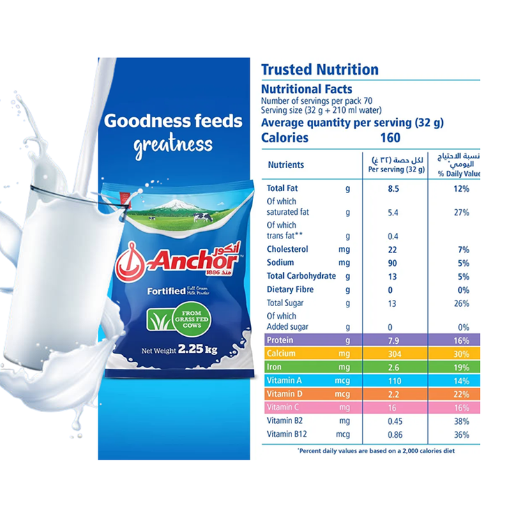 ویژگی ها: این شیر با ویتامین ها و مواد معدنی غنی شده تا از رشد و نمو سالم برای همه سنین پشتیبانی کند. این پودر شیر پر چرب و خوشمزه از گاوهای تغذیه شده با علف تولید میشود