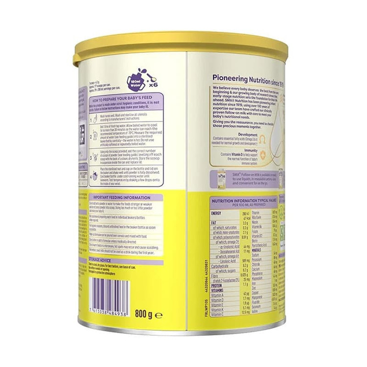 شیر خشک اس ام ای Sma شماره 2 مدل FOLLOW-ON MILK ( قوطی 800 گرمی ) مناسب کودکان بالای 6 ماه
