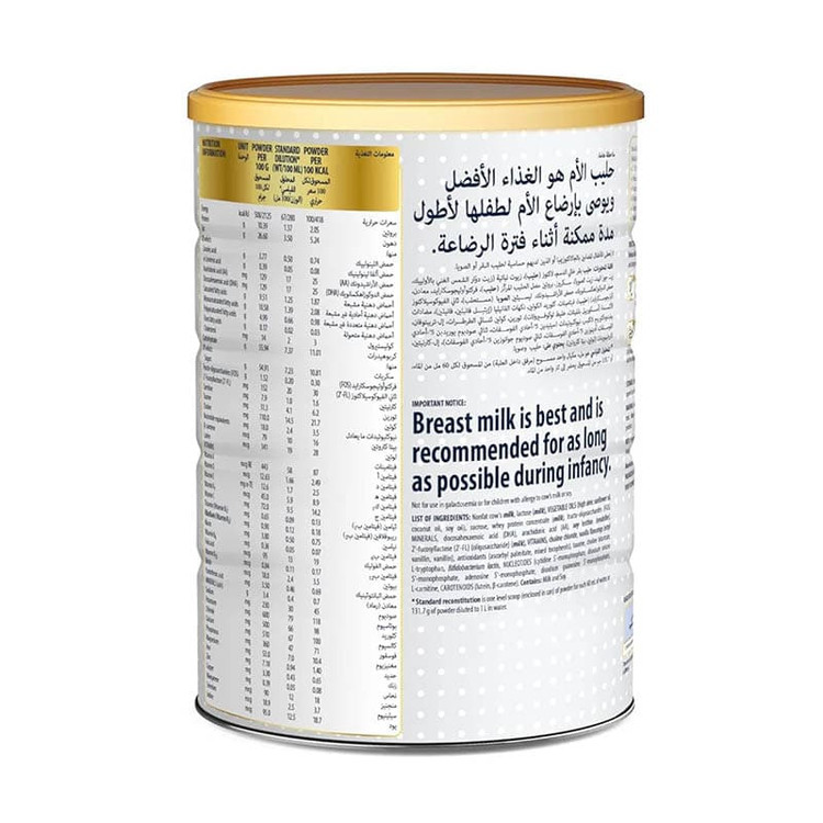 این محصول حاوی ترکیبی از مواد مغذی از جمله DHA ، HMO ، لوتئین ، و ویتامین E برای حمایت و کمک به رشد مغز ، چشم و سیستم ایمنی بدن نوزاد و همچنین جذب مواد مغذی کلیدی برای مغز را بهبود میبخشد.