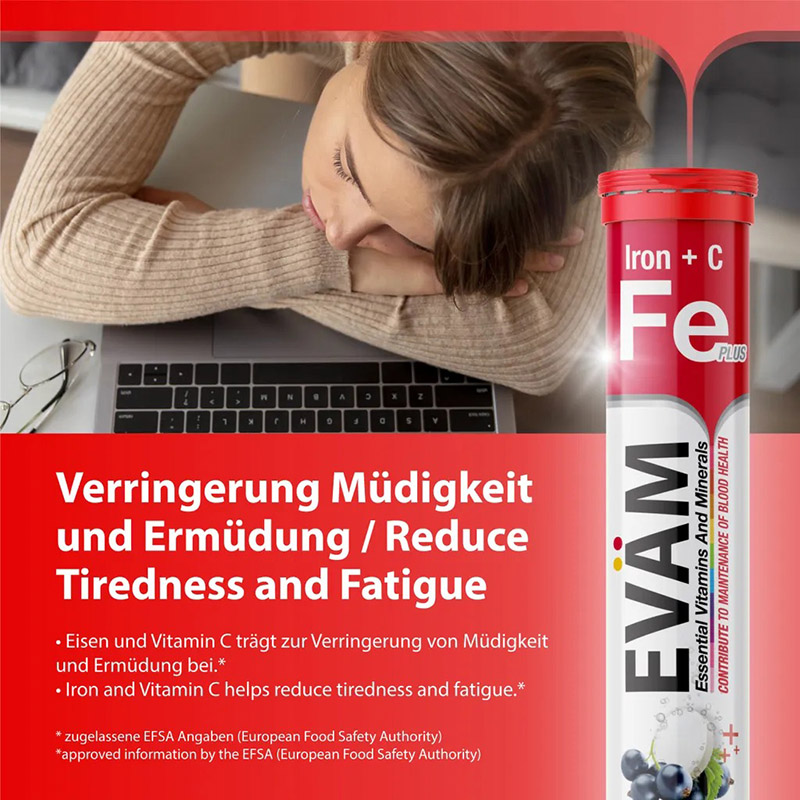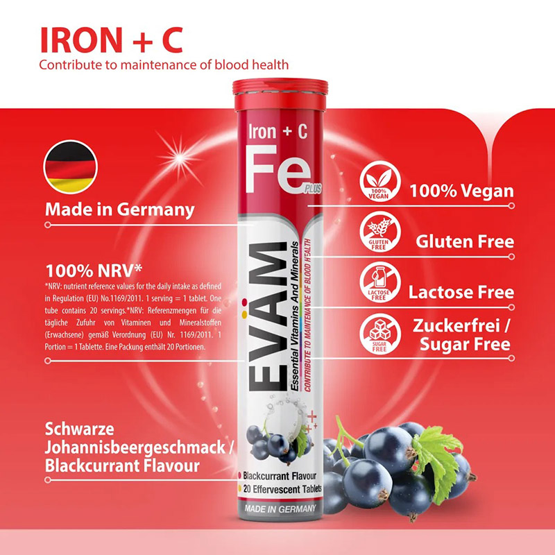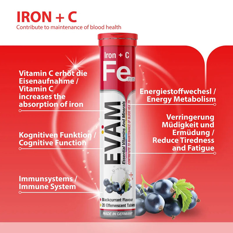 آهن به تشکیل طبیعی گلبول های قرمز و هموگلوبین کمک میکند ، متابولیسم انرژی را بهبود میبخشد و باعث کاهش خستگی و ضعف میشود و ویتامین C جذب آهن را افزایش داده و به عملکرد طبیعی سیستم ایمنی کمک میکند.