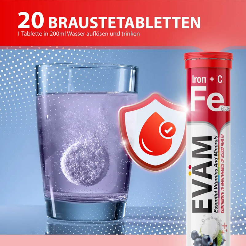 قرص جوشان ایوام EVAM مدل آهن و ویتامین سی Fe +c ( 82 گرم )
