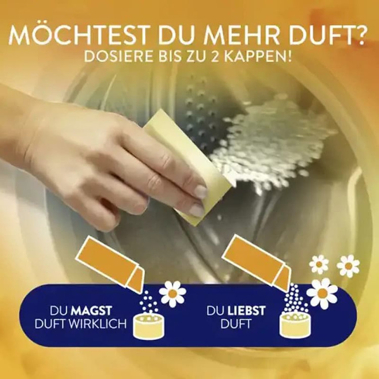 این محصول دانه های معطر لباسشویی است که برای افزایش ماندگاری بوی خوشایند لباس ها حین شستشو و پس از آن طراحی شده است.