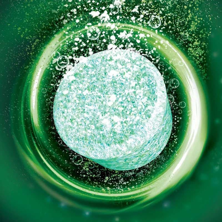این قرص ها به طور خاص برای مقابله با لکه های سرسخت در مناطقی که برس توالت به آنها دسترسی ندارد ( قسمت های زیر خط آب و داخل خمیدگی U شکل سیفون توالت ) طراحی شده ند.