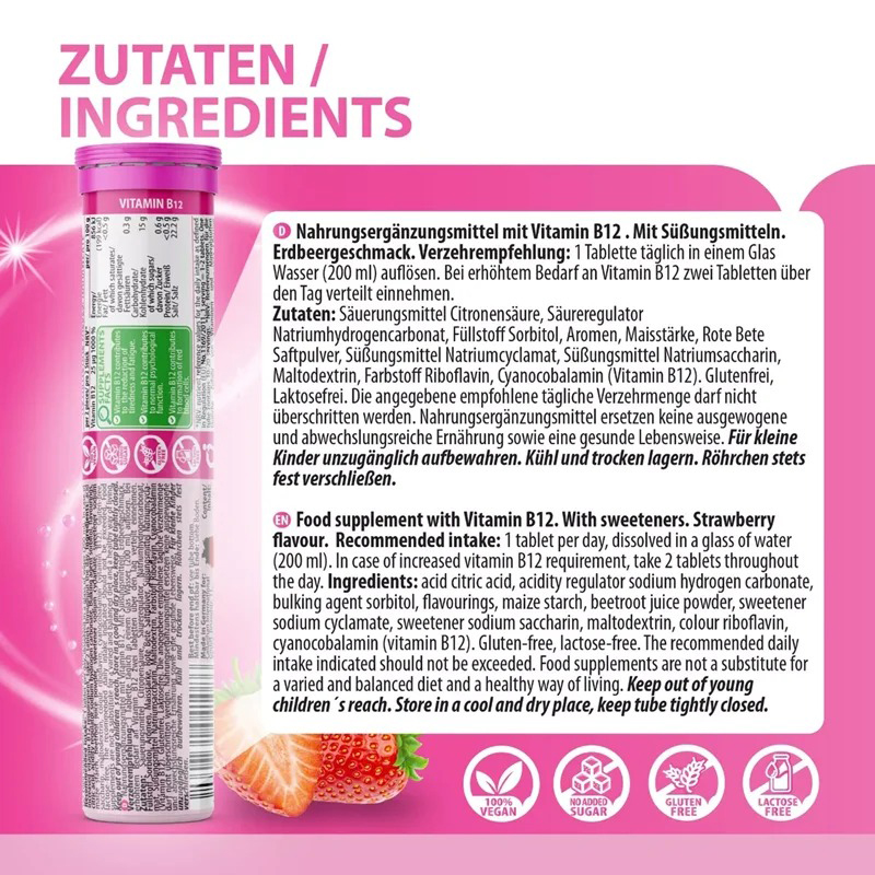 ویتامین B12 نقش حیاتی در متابولیسم انرژی بدن دارد و میتواند به بهبود متابولیسم بدن و کاهش خستگی و ضعف کمک کند. بهبود عملکرد سیستم عصبی کمک میکند. از کم خونی ( آنمی مگالوبلاستیک ) جلوگیری میکند و در بهبود حفظ سلامت پوست ، مو و ناخن ها موثر میباشد.
