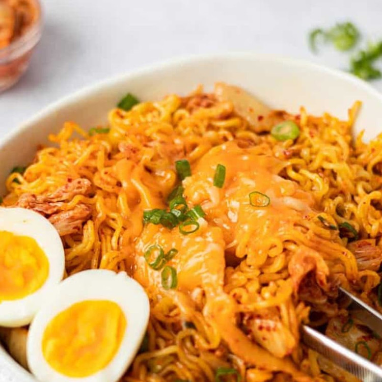 نوع نودل: این محصول نوعی رامن کره ای ( سرخ شده ) بسیار محبوب است که طعم تند مرغ سرخ شده را با پنیر خامه ای ترکیب میکند.