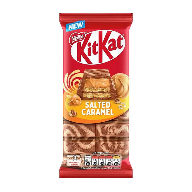 نوع شکلات: یک تبلت شکلات است که شامل ویفرهای ترد کلاسیک ، که با یک فیلینگ کارامل نمکی و ترکیبی از شکلات شیری و سفید مرمری پوشانده شده است.