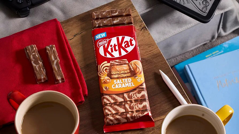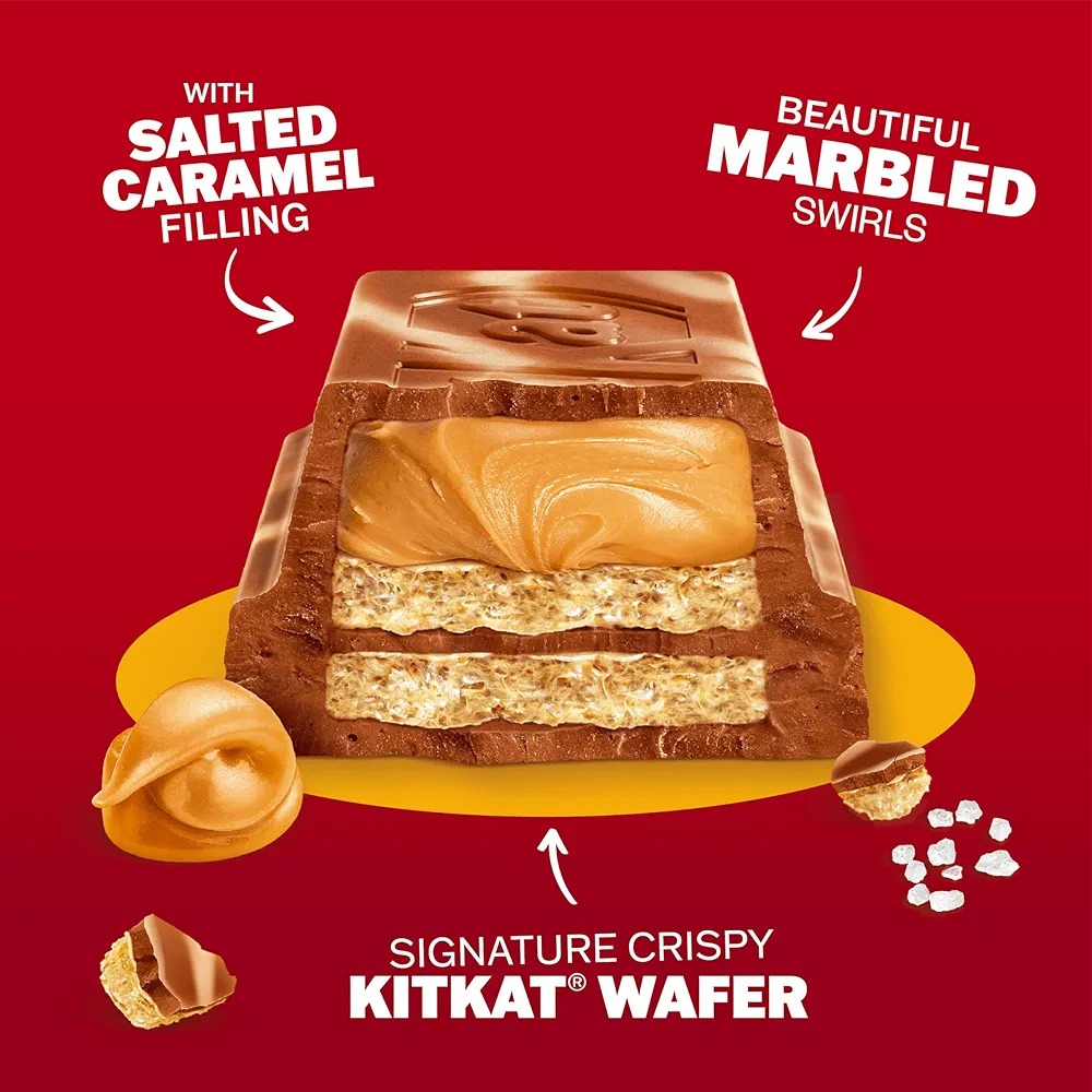 نوع شکلات: یک تبلت شکلات است که شامل ویفرهای ترد کلاسیک ، که با یک فیلینگ کارامل نمکی و ترکیبی از شکلات شیری و سفید مرمری پوشانده شده است.