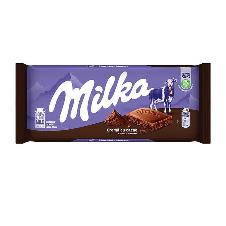 یک شکلات کلاسیک که با موس شکلاتی ( کرم کاکائو ) نرم و لطیف پر شده و با شکلات شیری آلپاین پوشانده شده است.