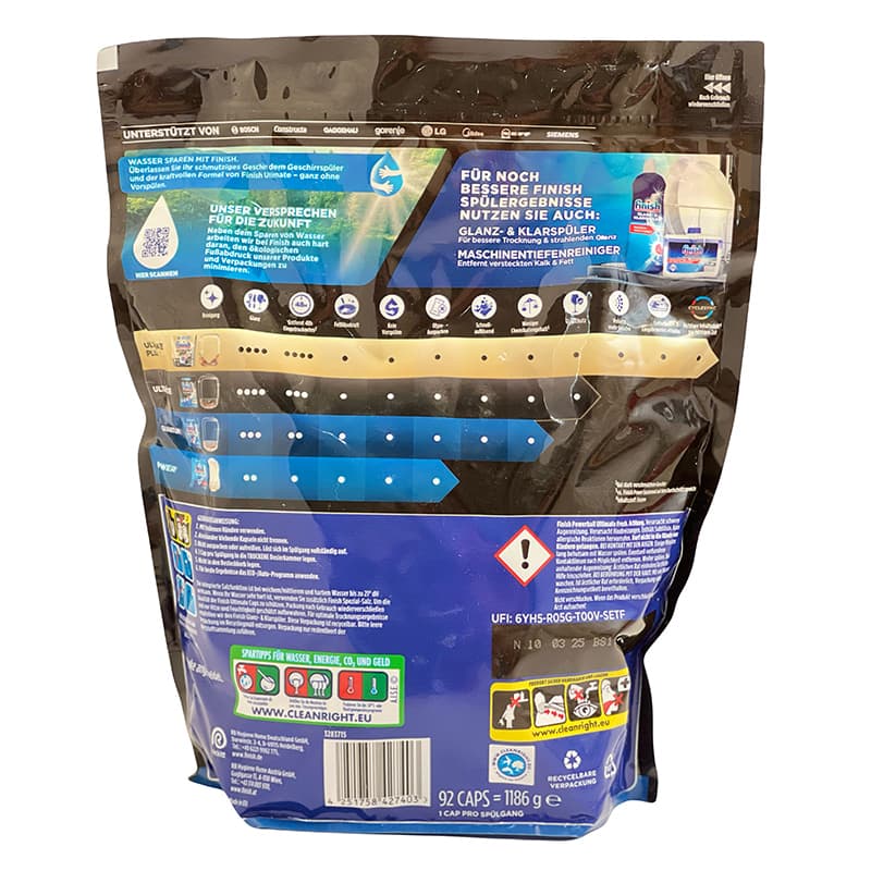 برای تمیز کردن موثر و براقیت درخشان ظروف طراحی شده است و به خصوص در برابر چربی های سرسخت و بقایای غذای خشک شده تا 48 ساعت بدون نیاز به آبکشی اولیه