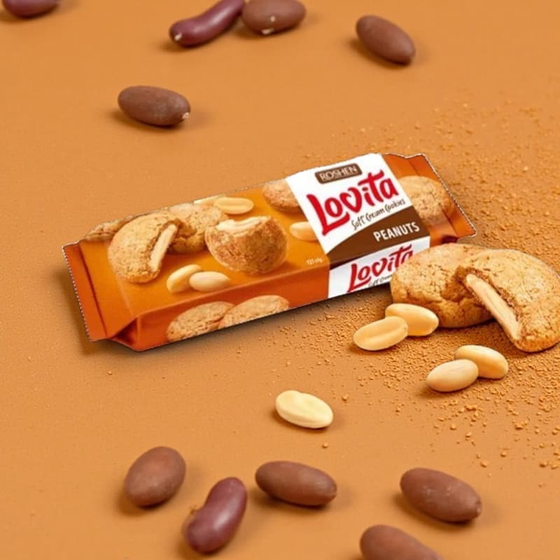 کوکی نرم کرم دار لاویتا روشن Roshen Lovita مدل بادام زمینی Peanuts ( بسته 127 گرمی )