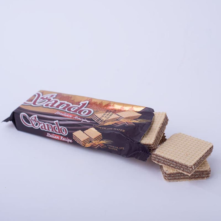 نوع بیسکوئیت: این ویفرها لایه های نازک و تردی هستند که با یک کرم شکلاتی صاف و خامه ای پر شده اند.