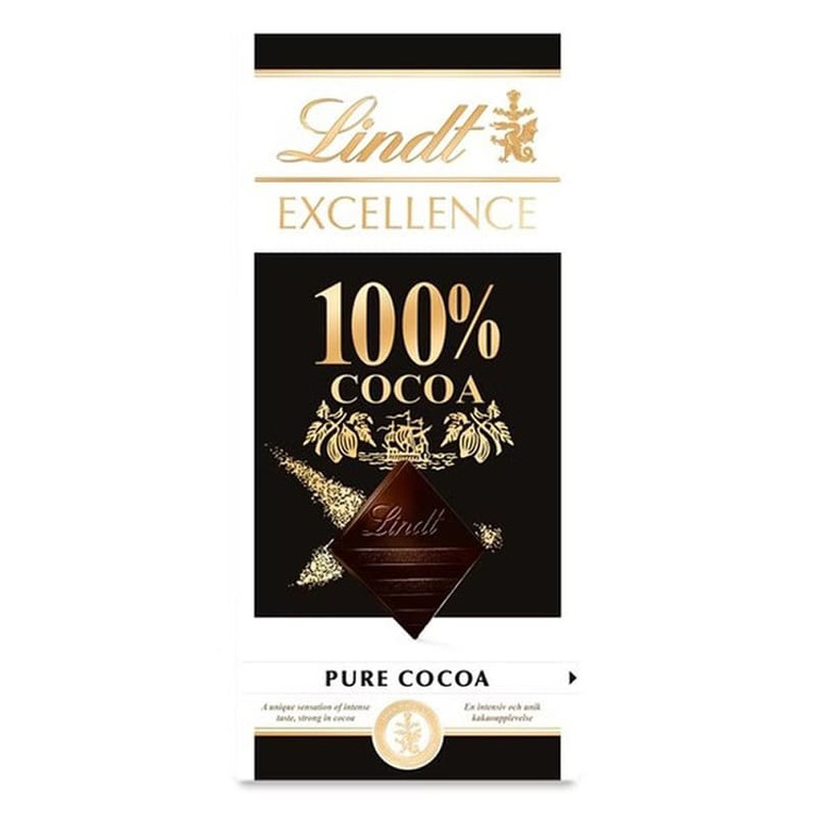 شکلات تخته ای لینت اکسلنس Lindt Excellence ( 100% کاکائو ) مدل کاکائو خالص Pure Cocoa ( 50 گرمی )