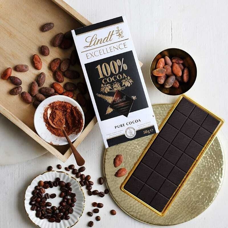 شکلات تخته ای لینت اکسلنس Lindt Excellence ( 100% کاکائو ) مدل کاکائو خالص Pure Cocoa ( 50 گرمی )