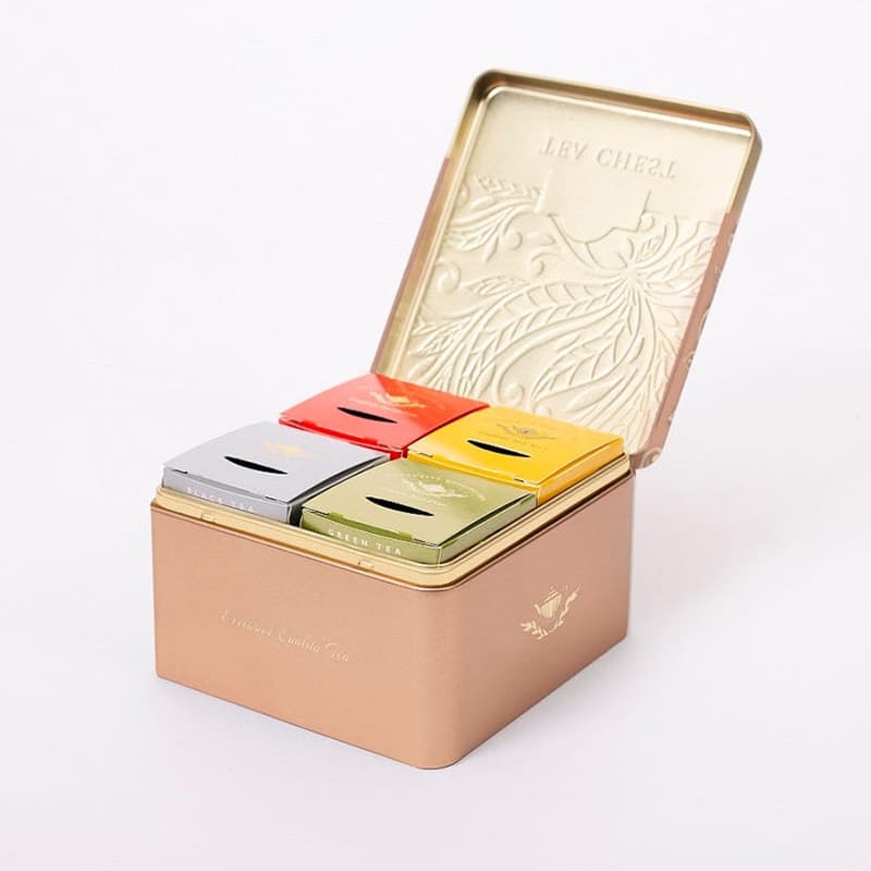نوع چای: مجموعه ای از 4 نوع چای مرغوب ( چای صبحانه انگلیسی ( چای سیاه قوی و کامل ) ، چای ارل گری ( چای سیاه معطر با اسانس برگاموت ) ، چای سبز خالص ، چای سیاه کلاسیک