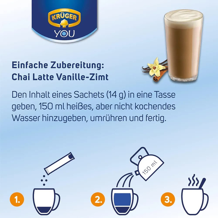 ویژگی ها: این محصول یک نوشیدنی چای شیری ملایم با عصار چای سیاه و طعم دهنده وانبل و دارچین است.