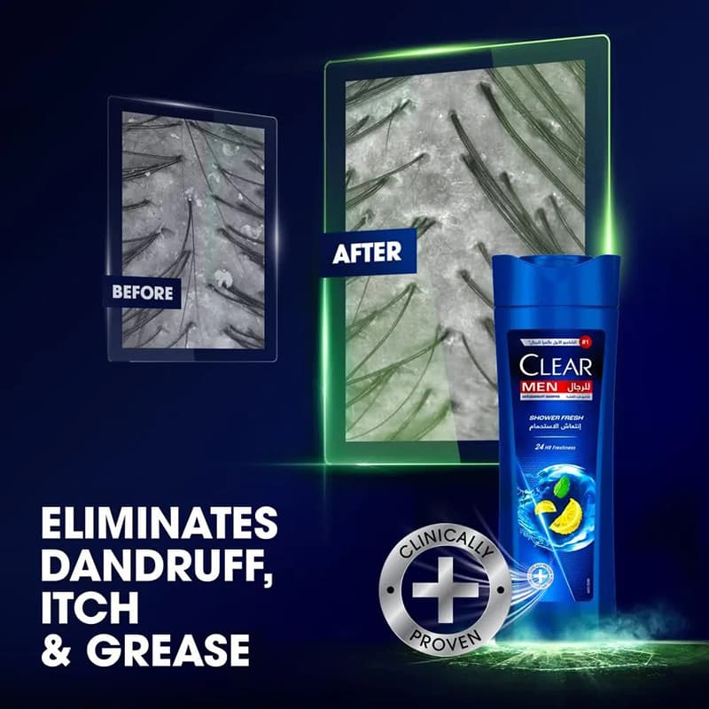 شامپو ضد شوره مردانه کلیر CLEAR مدل Shower Fresh برای رفع نیازهای پوست سر آفایان طراحی شده است.